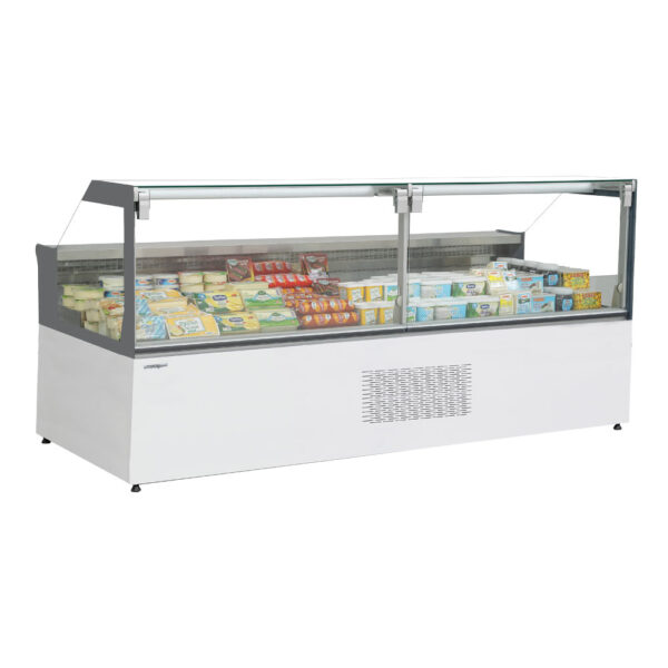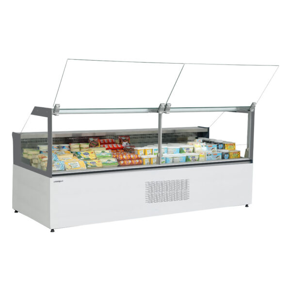 Die Metzgerei- und Feinkostabteilung von AMENTES ist für die Präsentation von Feinkostprodukten und verpacktem Fleisch konzipiert. Das Kühlsystem kann statisch oder geblasen gewählt werden. Es ist keine Installation erforderlich, da es intern motorisiert ist.