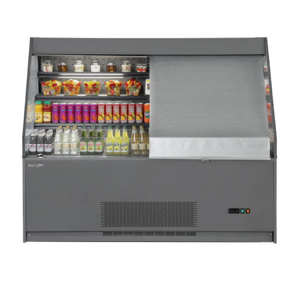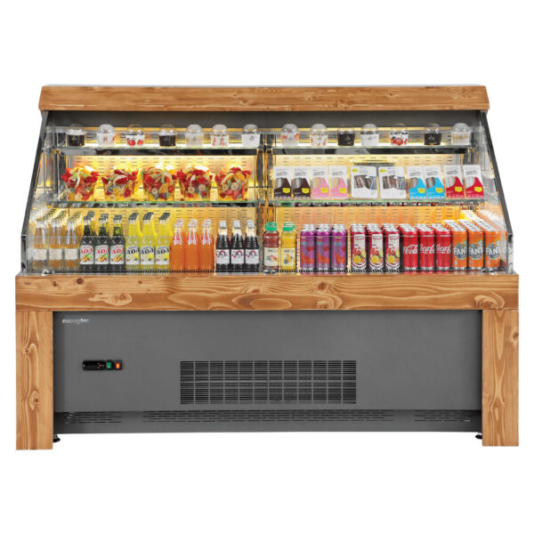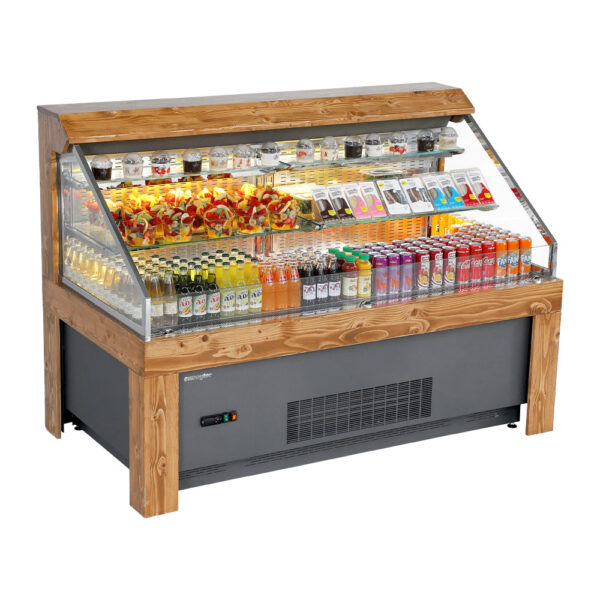 Mit seiner mehrstöckigen HESPEROS WD/GM/MR-Ausstellungsfläche, auf der Sie wandmontierte und inselartige Platzierungen platzieren können, ermöglicht es den Verkauf einer Vielzahl von Produkten wie Milch, Feinkost, Gemüse, Obst und Getränke.