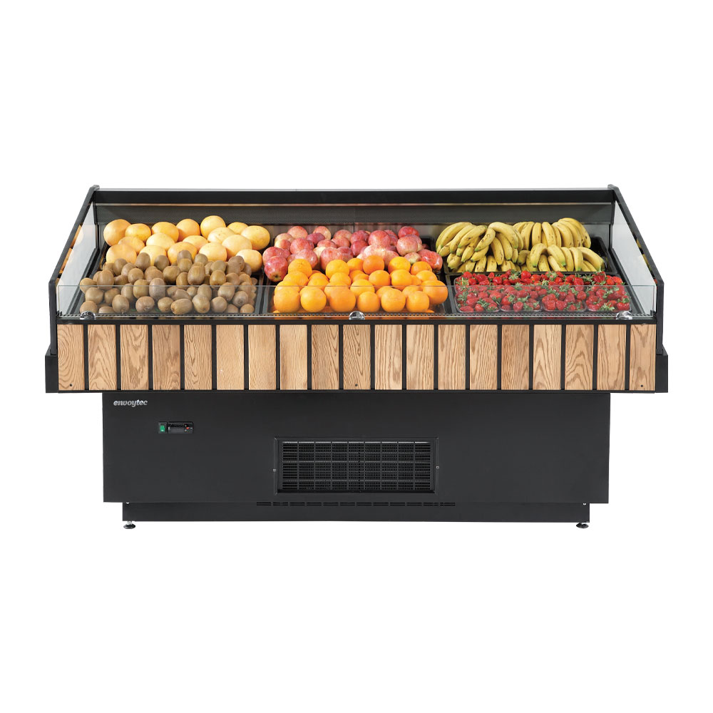 Der ROMULUS CL Grocery Store ist für die Präsentation von Obst und Gemüse konzipiert. Dank des optionalen Nebelsystems sind Obst und Gemüse länger haltbar.